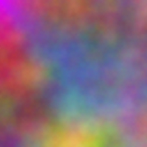 But we didn't want clouds, so lets try to add some color. First we just create something colorful. This step is fairly simple, let's just take three differently seeded Perlin noise functions and assign them as the red, green and blue color values. The output: